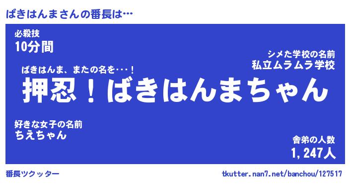 | 肩書あだ名 | 『ばきはんま社長令嬢』『ばきはんま班長』 |