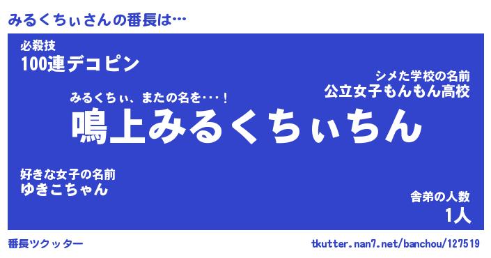 | 伝説のあだ名 | 『封印されしスナイパーみるくちぃ』 |