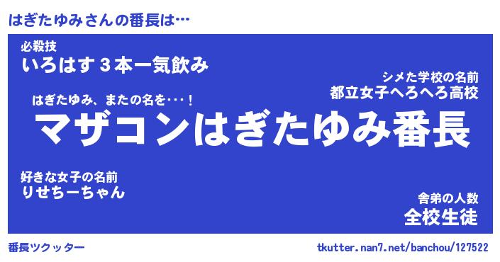 | 伝説のあだ名 | 『封印されしスナイパーはぎたゆみ』 |