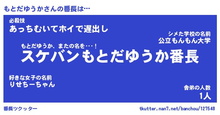| 肩書あだ名 | 『もとだゆうか店長』『もとだゆうか団長』 |