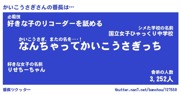 | 肩書あだ名 | 『かいこうさぎ店長』『かいこうさぎ班長』 |