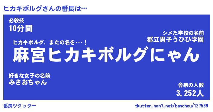 | 男性向けラノベタイトル風あだ名 | 『ヒカキボルグアートオンライン』 |