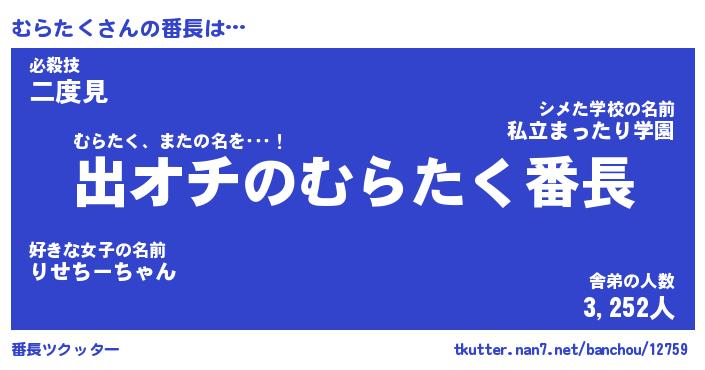 | 肩書あだ名 | 『むらたく御曹司』『むらたく国家主席』 |