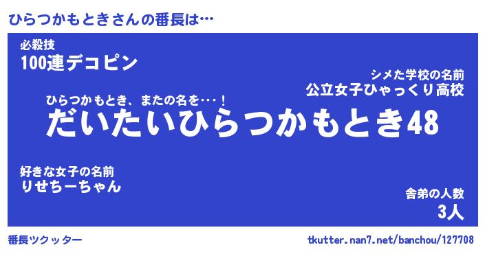 | ピコ太郎風あだ名 | 『ヒコ四郎』『ピヒ二郎』『ヒラ十郎』 |