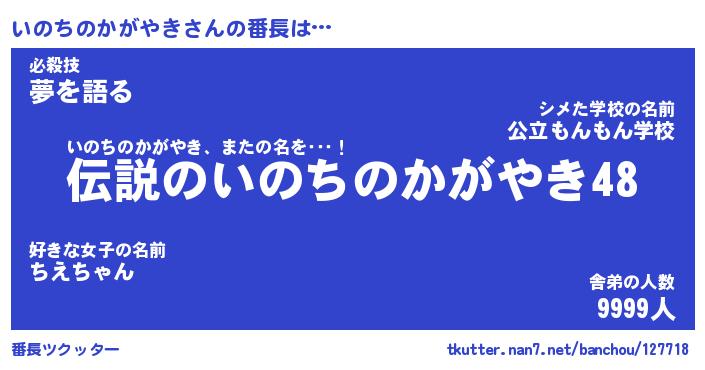 | ヒーロー風カッコイイあだ名 | 『スーパーイノチノカガヤキ』 |
