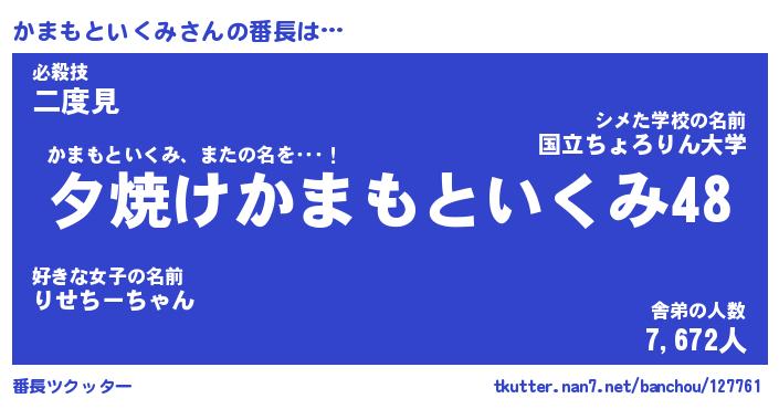 | 肩書あだ名 | 『かまもといくみ店長』 |
