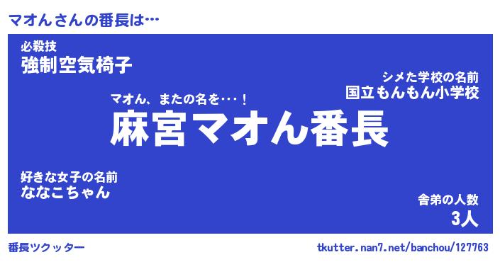 | 2回繰り返すあだ名 | 『マオマオ』『ママオオ』『おやおや』 |