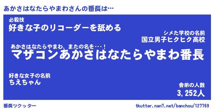 | ヒーロー風カッコイイあだ名 | 『スーパーアカサハナタラヤマワ』 |