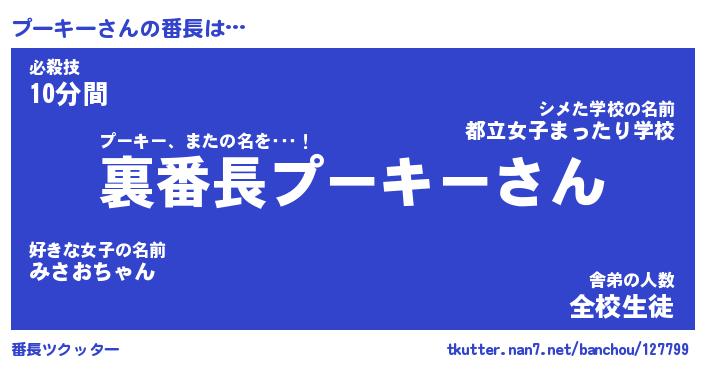 | 意味不明あだ名 | 『ペロリンプーキー』『永久保存プーキー』 |