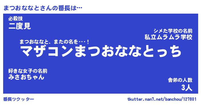 | 2回繰り返すあだ名 | 『まつまつ』『ままつつ』『おたおた』 |