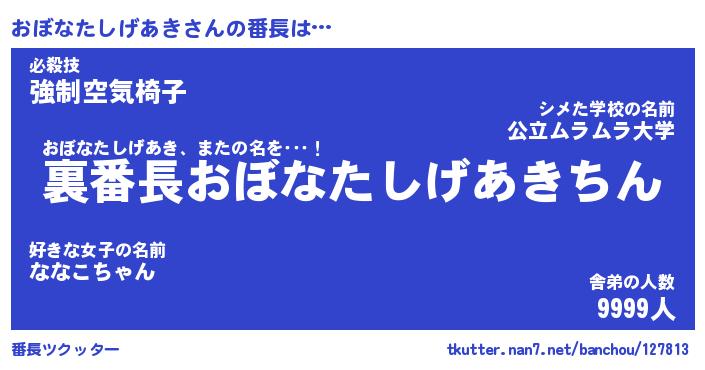 | 肩書あだ名 | 『おぼなたしげあき御曹司』 |
