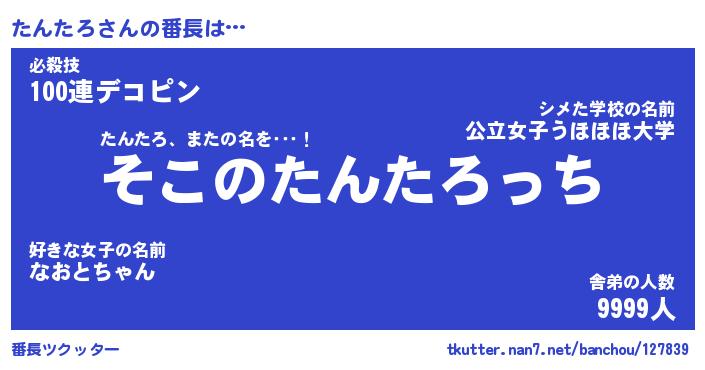 | 意味不明あだ名 | 『ペロリンたんたろ』『永久保存たんたろ』 |