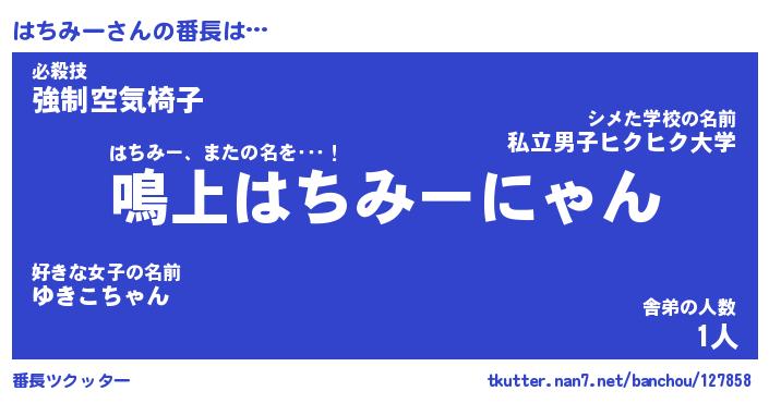 | ピコ太郎風あだ名 | 『ハコ太郎』『ピハ二郎』『ハチ史郎』 |