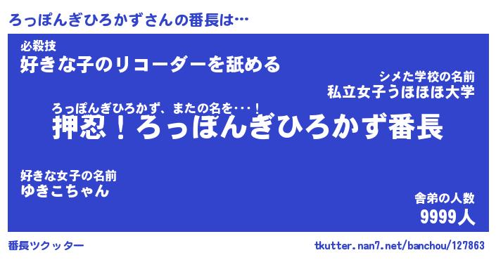| 肩書あだ名 | 『ろっぽんぎひろかず社長』 |