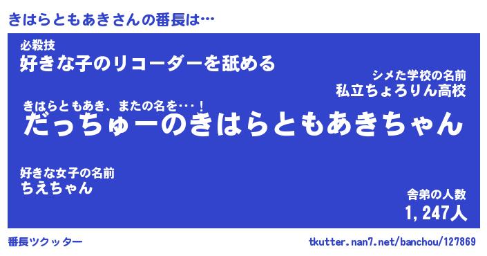| 肩書あだ名 | 『きはらともあき社長』 |