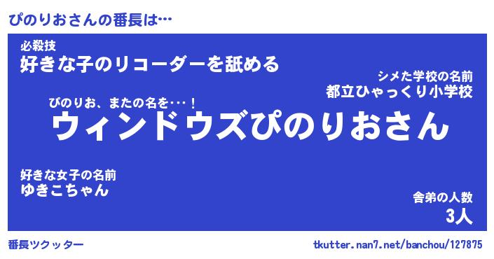| 肩書あだ名 | 『ぴのりお店長』『ぴのりお国家主席』 |