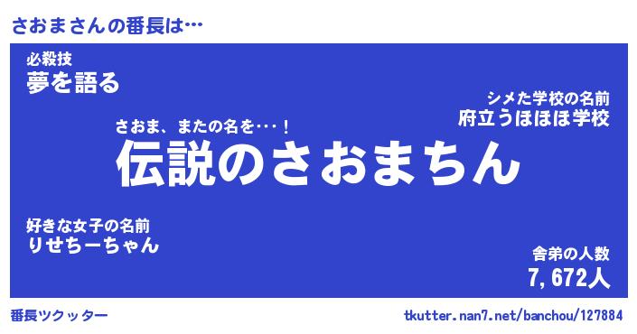 | 伝説のあだ名 | 『伝説のスナイパーさおま』 |