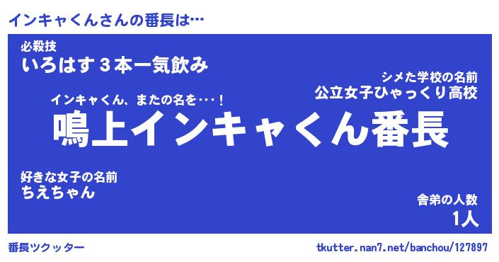 | ヒーロー風カッコイイあだ名 | 『スーパーインキャクン』『銀牙騎士イン』 |