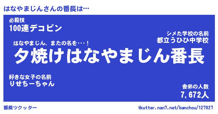 | 肩書あだ名 | 『はなやまじん店長』『はなやまじん班長』 |