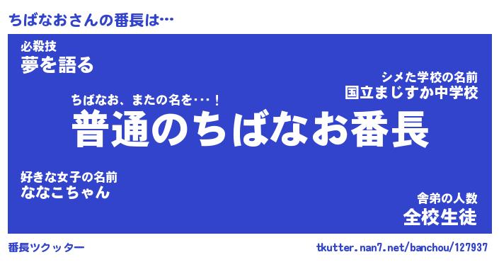 | ヒーロー風カッコイイあだ名 | 『スーパーチバナオ』『暗黒騎士チバ』 |