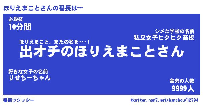 | 恥ずかしいあだ名 | 『プリティーほりえまこと』『ほりっちょ』 |