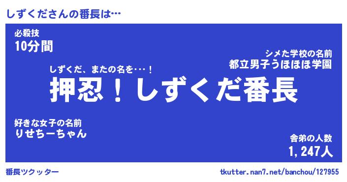 | ピコ太郎風あだ名 | 『シコ太郎』『ピシ史郎』『シズ四郎』 |