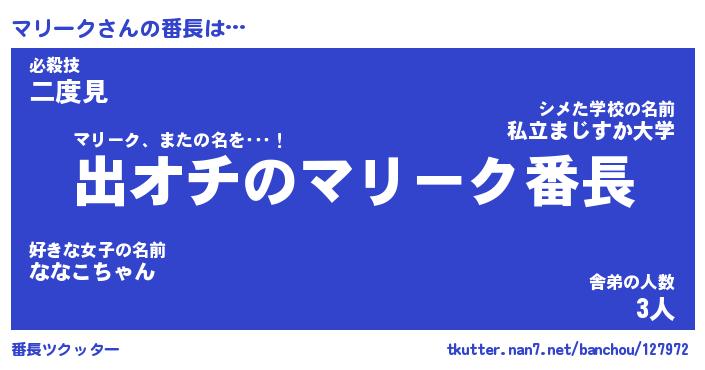 | ピコ太郎風あだ名 | 『マコ次郎』『ピマ太郎』『マリ十郎』 |