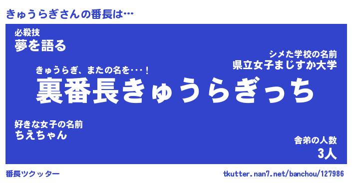 | ファンタジー風あだ名 | 『キュフェル』『エターナルキュウラギー』 |