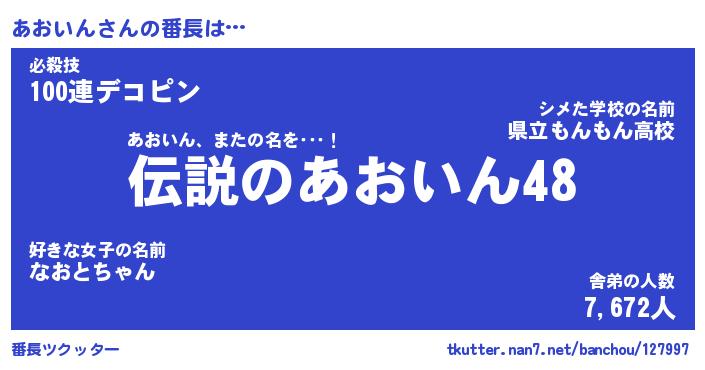 | 肩書あだ名 | 『あおいん店長』『あおいん国家主席』 |