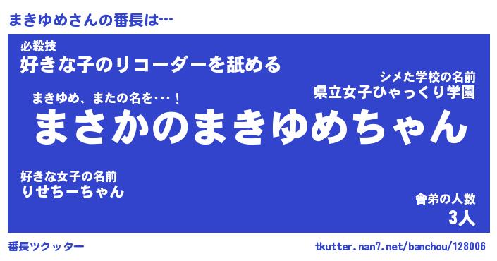 | 欧米人風あだ名 | 『マイケルまきゆめ』『ウサインまきゆめ』 |