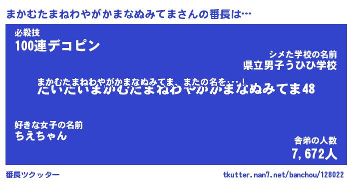 | ヒーロー風カッコイイあだ名 | 『スーパーマカムタマネワヤガカマナヌミテマ』 |