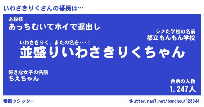 | ヒーロー風カッコイイあだ名 | 『スーパーイワサキリク』『銀牙騎士イワ』 |