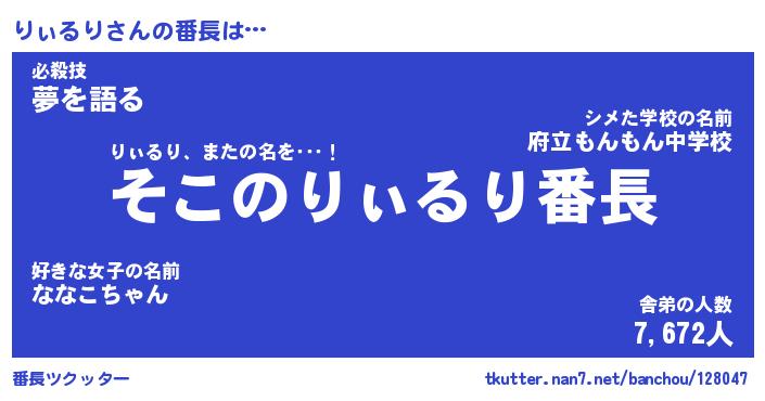 | 肩書あだ名 | 『りぃるり店長』『りぃるり大統領』 |