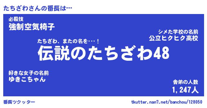 | 肩書あだ名 | 『たちざわ御曹司』『たちざわ国家主席』 |