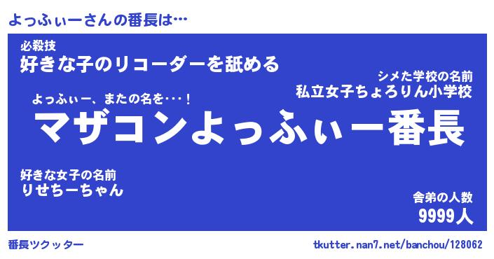 | 伝説のあだ名 | 『封印されしスナイパーよっふぃー』 |