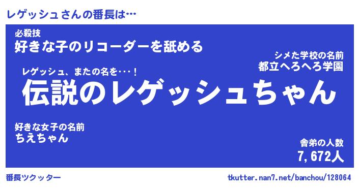 | 肩書あだ名 | 『レゲッシュ社長』『レゲッシュ国家主席』 |