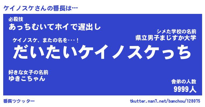 | ヒーロー風カッコイイあだ名 | 『スーパーケイノスケ』『天弓騎士ケイ』 |