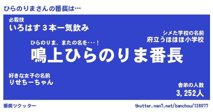 | ヒーロー風カッコイイあだ名 | 『スーパーヒラノリマ』『銀牙騎士ヒラ』 |