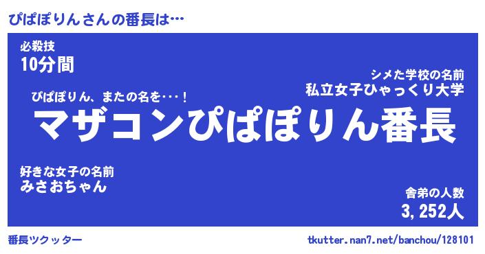 | 伝説のあだ名 | 『封印されしスナイパーぴぱぽりん』 |