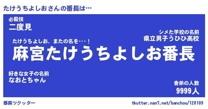 | 2回繰り返すあだ名 | 『たけたけ』『たたけけ』 |