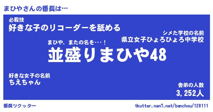 | ヒーロー風カッコイイあだ名 | 『スーパーマヒヤ』『ウルトラまひやマン』 |