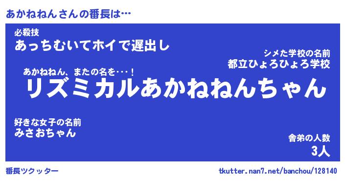 | ヒーロー風カッコイイあだ名 | 『スーパーアカネネン』『天弓騎士アカ』 |
