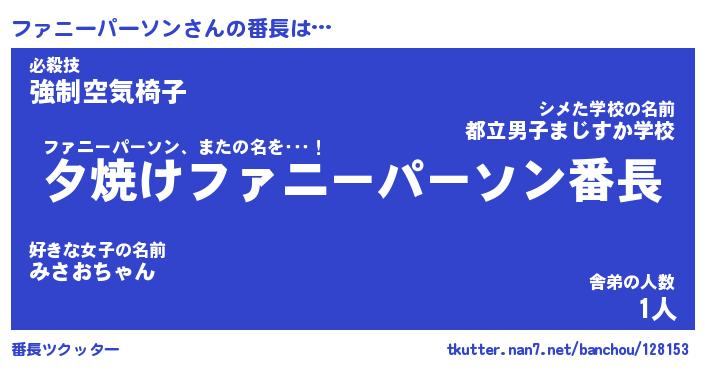 | 伝説のあだ名 | 『封印されしスナイパーファニーパーソン』 |