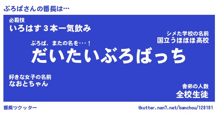 | ヒーロー風カッコイイあだ名 | 『スーパーブロバ』『ウルトラぶろばマン』 |