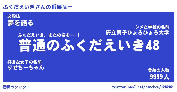 | 肩書あだ名 | 『ふくだえいき社長』『ふくだえいき団長』 |