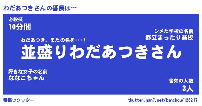 | 意味不明あだ名 | 『ペロリンわだあつき』 |