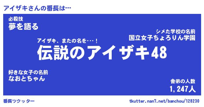 | 意味不明あだ名 | 『ペロリンアイザキ』『永久保存アイザキ』 |