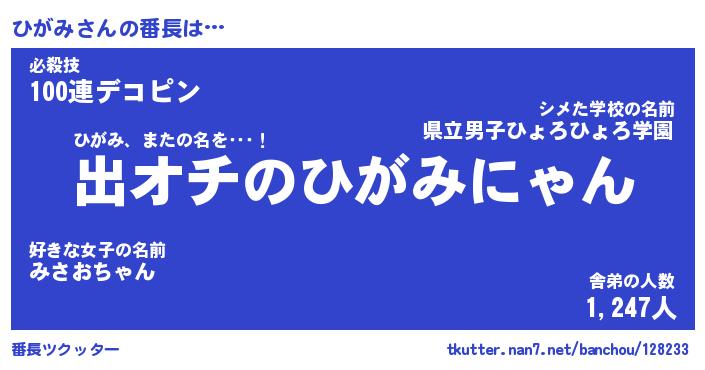 | ヒーロー風カッコイイあだ名 | 『スーパーヒガミ』『ウルトラひがみマン』 |
