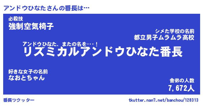| ヘコむあだ名 | 『アンにゅー』『つくし』『アンっ子』 |