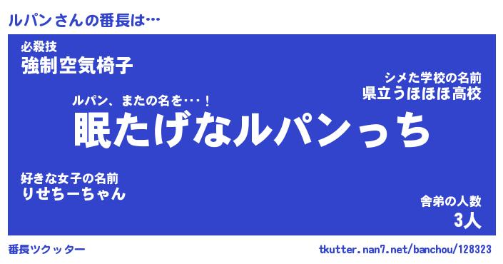 | ポケモン風あだ名 | 『ルパチュウ』『ルパンダネ』 |
